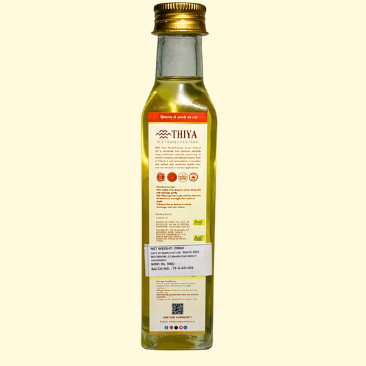 Thiya Cold Pressed Almond Oil (Wood Pressed) | Made from Kashmiri Mamra Almonds | Natural | Edible & Topical | Kashmir's Finest | 200ml